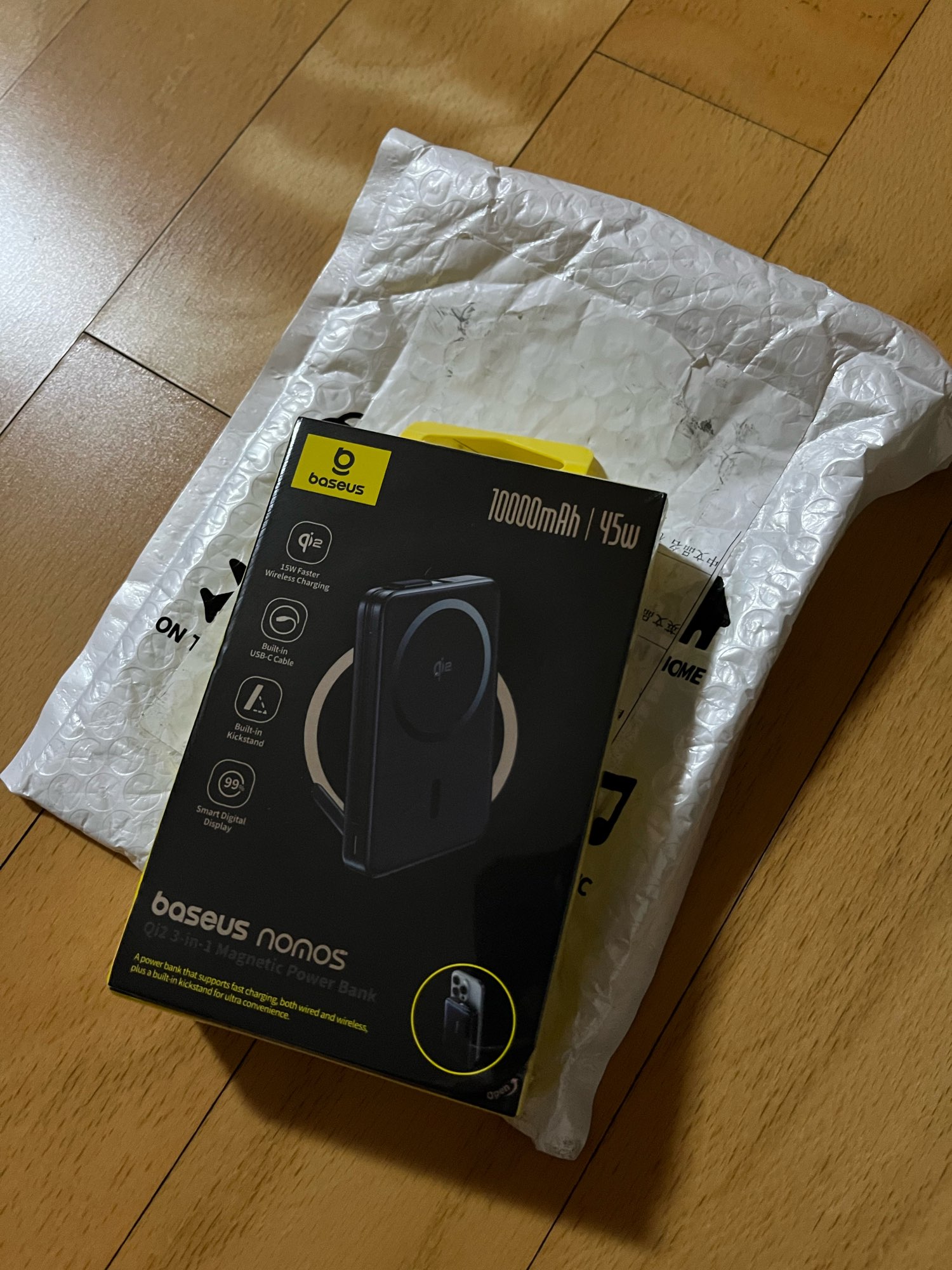 The delivery address couldn't be changed, so it took a long time to receive, but the main product box was well-packaged, so I received it safely. It's an iPhone mini, so it's a bit big for my phone. I only checked the auxiliary battery charging and MagSafe, but all wireless/wired/charging ports seem normal, and the battery level indicator and charging amount toggle work well. There's a cute kickstand underneath, and it feels sturdy.