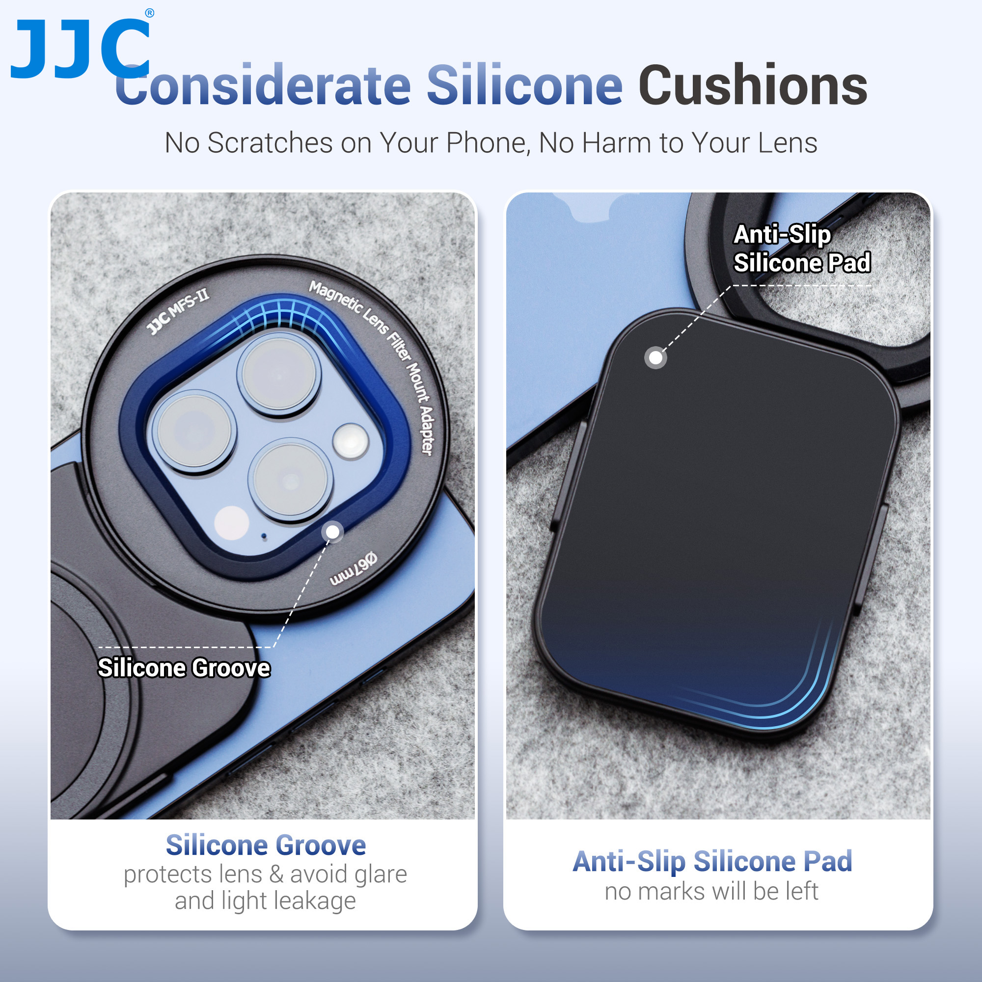 The metal filter interface of MFS-II adopts silicone groove double protection, which does not harm the phone lens and enhances anti-glare and anti-leakage functions. The product features MAG-SAFE magnetic suction design for quick and secure attachment to the back of the phone.