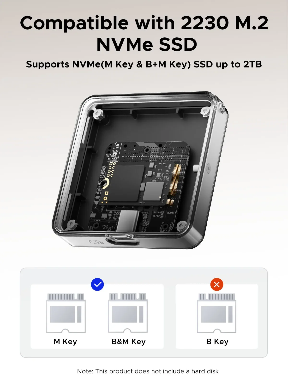 Perfectly suited for use with smartphones, tablets, laptops, and gaming consoles, this enclosure offers versatile compatibility and functionality.Compatible with 2230 M.2 NVMe SSD