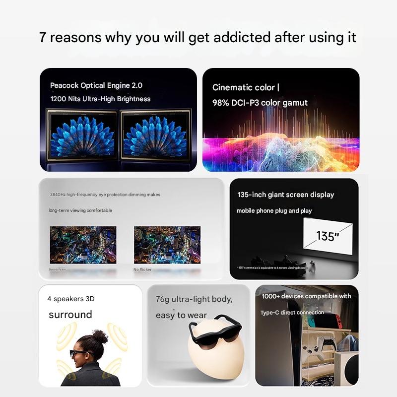 Rayneo Air3s Pro AR Smart Glasses 1200nits 135inches HD Screen 3840 Hz PWM 3D Glasses For Xbox PS5 Swi